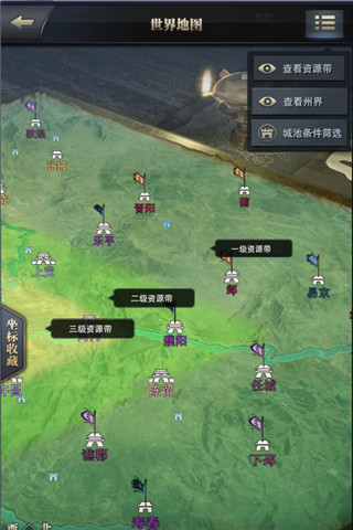而一级资源带的土地相对来说还是比较贫瘠,想要资源无忧,各位主公还需要发展至更加肥沃的土地上。这个时候就涉及到迁城的问题了。主公们想要迁城,一般是两种情况,随机迁城跟指定地方迁城。随机迁城的情况主要是,主公刚建城的时候,系统会赠送一个迁城令。在地理环境不好、邻里乡亲相处不和谐或者离联盟大部队战友太远的时候,可以选择使用迁城令,将主城迁到地图上的任意一个州。这个时候建议选择盟友聚集较多的州,再次发育。当然,主公要是被饿狼沦陷得惨不忍睹的时候,系统也会补偿迁城令,但小编试过,在二级资源带被沦惨的时候,迁城的时候,只能去到一级资源带,而且还挥一挥衣袖,不能带走一片土地!另外一种迁城的方法,是指定土地进行迁移。这个需要主公先在学问府学习完分城的技能,学完之后可以在二级资源带选择合眼缘的土地,先建造分城。二级资源带的土地比较肥沃,相对的,守兵也多。建议各位主公不要选择等级太高的土地进行建造,避免士兵伤亡过重。分城建造的过程主公要时刻留意,不要给有心之人攻破。待到分城建完,主公便能点击转移,将主城从一级资源带变换到二级资源带,并且,一级资源带的土地都还保留着。当然,如果主公们想要占领更高级的土地,除了升级宫城扩大土地拥有数量跟范围之外,也可以选择放弃一级资源带的低级土地。高级土地的产量跟收入,也是大幅度提高的!