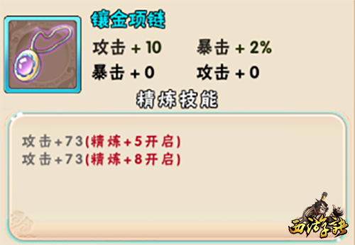 ②精炼技能:攻击+73(精炼+5开启)、攻击+73(精炼+8开启)