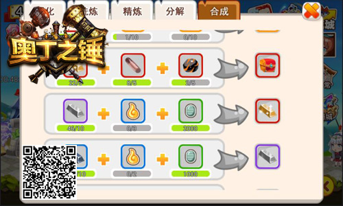4、合成玩法。玩家可消耗金块、陨石碎片、六道舍利合成SS级装备箱,开箱随机获得1件SS级装备。