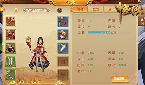 《悟空传》中,角色的每一件装备,都是具有属性的,由基础属性、附加属性、升品属性、镶嵌属性和套装属性构成。不同部位的装备,其基本属性和附加属性都是不一样的。《悟空传》中每一件装备属性提升的空间十分巨大,一是通过装备培养(如:强化、刷新、精炼和升品),装备属性将得到最大限度的提升,二是装备种类很多,且成套的装备也可以给玩家带来非常可观的战力。
