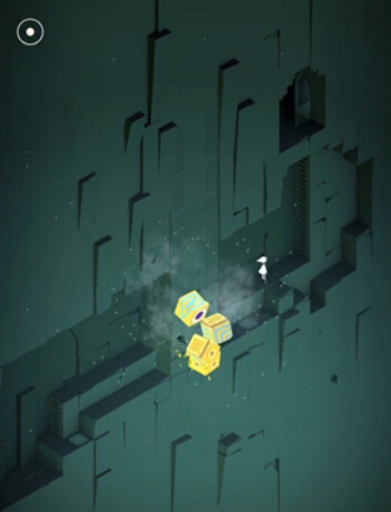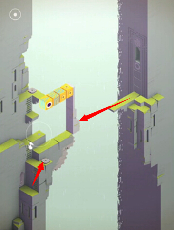 2、利用转盘机关移动踢腾,把图腾移动到平台上后转动轮轴。转到到如图所示位置,让艾达走过去。同样的方式再把图腾转到右边,让艾达继续往前走,爬上去,触动新的机关。
