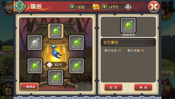 妖刀物语的镶嵌其实就是为装备打宝石,为装备增加额外的属性,不只是武器可以镶嵌,防具首饰同样可以。镶嵌一共包含6个孔,也就是可以镶嵌6个宝石。镶嵌的宝石可以取下来,宝石可以循环利用