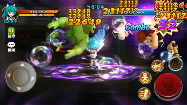 当进入化学室时,就会发现周围全是镭射的标志,这时有3名戴眼镜的胖子发现了我们,二话不说,就对我们展开了进攻,还好咪咕身手敏捷,轻易的躲开了3名戴眼镜的胖子的进攻,但是3名戴眼镜的胖子也不是省油的灯,咪咕在化学室绕了2圈,才将他们3个聚在一起,一招突进技能,将他们击倒,所谓胖子,当然是皮厚啦,怎么会那么容易让咪咕给打败呢,这时咪咕毫不犹豫的使用爆发技能和浮空技能,彻底将他们击倒。但是没想到的是他们还有援军,后面的4个瞬间翻滚到咪咕面前,一不留神就会被他们击中,老套路对付他们,我绕我绕,我是绕圈小公主,3圈下来,看你们还不头晕,这时先前释放的技能也差不多恢复了,突进,爆发,浮空3连击,彻底将他们清理干净。