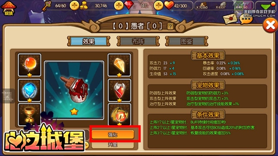 需要强调的是,塔罗阵法中有“阵法碎片”和“阵型组件”两个完全不同的概念。单一阵法的阵法碎片是唯一的,集齐一定数量相同的阵法碎片就能召唤阵法。《心之城堡》为了帮助玩家快速召唤出自己心仪的阵法,提供了“次元之洞”这一收集阵法碎片的圣地,只要过关就会有海量阵法碎片掉落哦,大家可以点击阵法“效果”界面底部的加号,就能获悉阵法该阵法碎片的获取途径;阵型组件则是阵法的六个不同的组成部分,小伙伴们需要集齐这六个不同的组件才可以强化阵法。点击“效果”界面的阵型组件,也能获悉其获取途径~