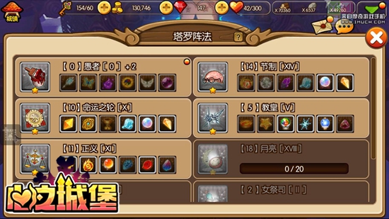 《心之城堡》塔罗阵法来源于古老的占卜术塔罗牌,自然也拥有塔罗牌的魔力,那就是为咱们的萌宠天团提供强大的BUFF效果。《心之城堡》故事模式的过关奖励中会概率掉落阵法碎片,集齐一定数量某一阵法所需的阵法碎片即可召唤该阵法!