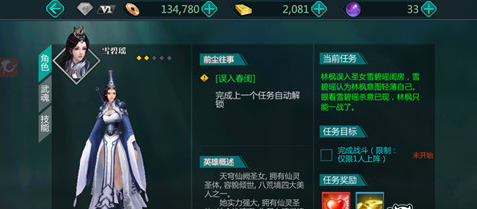 雪碧瑶在玩家通关拍卖场副本之后在忆江湖之中会解锁该英雄的剧情任务,难度不大,限制1个人上场,使用输出能力较强的主角林枫可以轻松应对;
