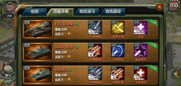 技能发动打击敌人随机2辆坦克,技能为1级时,攻击力为普通攻击的135%