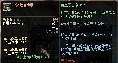 头肩45-50技能加1级,也就是加了1级斩铁和觉醒,很多人头肩都用来做斩铁兵的装备了…