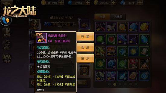 无疑养成是RPG巅峰之路,作为VIP的小编诚实讲是没有捷径可走,龙之大陆的职业外观系统也是一样。养成思路可以分成2条:一是装备获得需要积累碎片;而是装备升级需要消耗材料。
