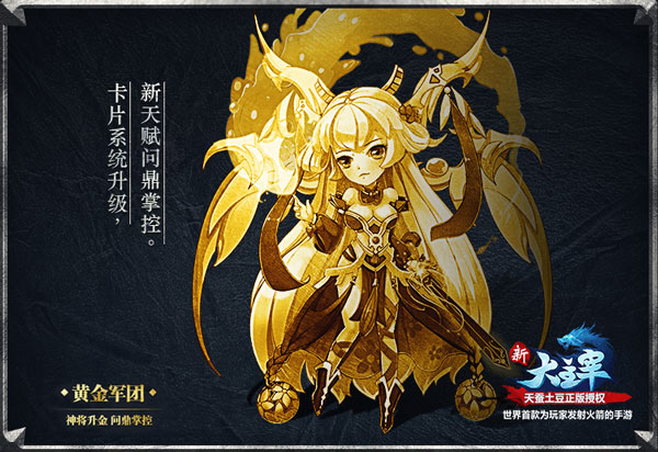 “黄金军团”无疑是《新大主宰》新资料片的最大亮点,从最新情报来看,只有满足晋升条件的主角、橙将和红将才能升为“金将”,及掌控境界。晋升成功后的角色卡除了外形上变为金色之外,属性能得到极大提高,还能获得不俗的天赋点。这也意味着,不久的将来,你将拥有一支战斗力恐怖的“黄金军团”,称霸大千世界指日可待!目前官网正在“全民升金”专题活动,写下你升金卡的理由,将有机会获得8888豪华大礼包!