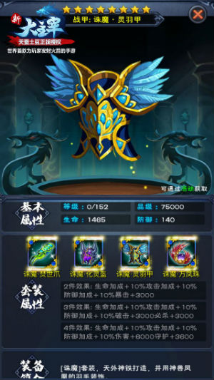 诛魔四件套备受修炼者追捧不仅仅是因为它们炫酷的外观,它们每一件都能增加额外属性,套装属性更是逆天,仅凑齐2件,就能享受生命、攻击、防御三项属性10%的加成,额外还增加3000的暴击;凑满3件能达到生命加成10%、攻击加成10%、防御加成10%、破击增加300、必杀增加3000的效果;当凑齐一整套时,除了生命、攻击、防御加成10%之外,伤害增加6000,守护增加3600。想象一下,如此强悍的属性加成到战宠身上,还不神挡杀神,佛挡杀佛?值得一提的是,在这套装备的加成下,收益的可不止战宠,上阵的人物也能享受100%的加成。