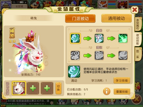 蓬莱岛的坐骑技能分为柔云和清欲。柔云有涌动、腾云、惊天,依次加强风起云涌、百毒不侵以及石破天惊的技能效果。清欲则有流云,聚神,缭绕,对应加强化气凝神、漫天花雨和云雾缭绕的技能效果。蓬莱岛更侧重技能辅助效果,所以此次更新的坐骑技能更多的围绕在技能释放上。
