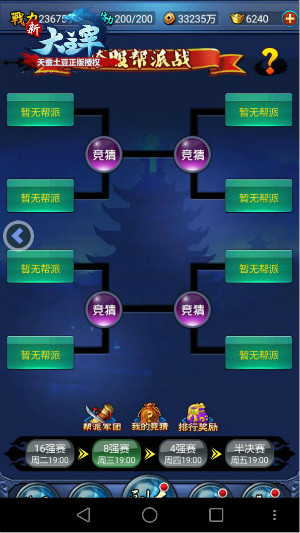 跨服帮派战将在每周二至周六晚七点进行,共分为五场,由获得决赛资格的32支队伍依据系统生成的对战分组两两公会之间进行战斗,强强对决,上演一幕幕最为残酷血腥的龙争虎斗!另外公会成员还可以在当日比赛结束至次日比赛开始前期间参与竞猜活动,自行选择一个支持的帮派投注,竞猜成功的玩家在赛后也将会收获到丰厚的奖励,大大地增强了公会战的乐趣!