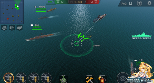 在十二艘战舰的大混战中,战机转瞬即逝,舰长大大需要时刻注视雷达界面敌方战舰的动态。此外,战列舰、巡洋舰以及驱逐舰的火力范围也会在雷达界面显示,舰长大大只需红、绿图标的识别,快速锁定敌舰,或者快速摆脱敌舰的火力覆盖。