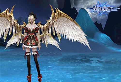 千万年来,魔法大陆上一直流传着无数关于神与魔的传说故事。其中有战争杀戮,当然也不乏爱恨痴缠。情人节之际,两款全新的翅膀即将现世。其中,十六阶翅膀以黑红色的羽毛为主,在鎏金的翅膀骨架上,点缀着鲜红如血的玫瑰花。这款“魔之翼”颇有几分“永生之爱”的吸血鬼风情。