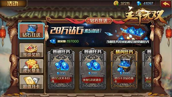 为了庆祝安卓平台不删档测试的开启,手游《主宰无双》更是为大家准备了超多惊喜福利。除了有每日登陆福利、稀有英雄、升级奖励、充值返利等活动之外,完成游戏指定目标任务,还可以在游戏中累积获得20万钻石,让你可以尽情畅游大千世界。是不是超级棒呢?如果心动的话,就赶紧来游戏中体验吧!