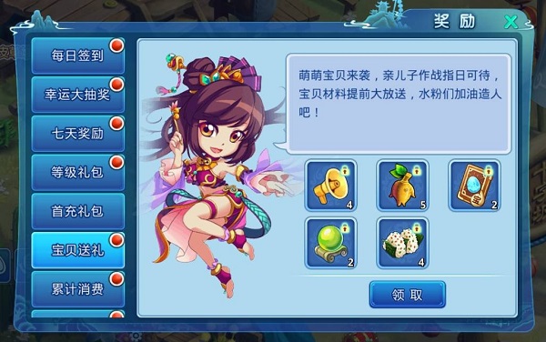 首先第一波是限时登陆,连续14天,每天一上线便有各种培养道具扔到你门口,其中有目前比较难获取的宝贝培养道具,之前水水就提过宝贝的升级只能靠经验道具升级,所以如果错过这次嘉年华,宝贝的升级将会远远跟不上别人的节奏。