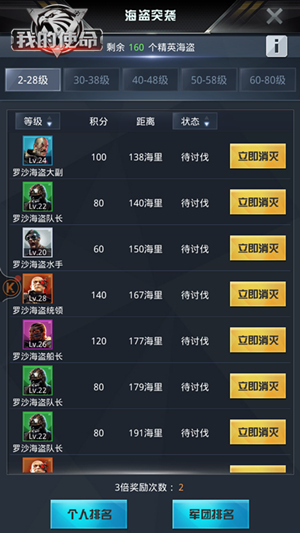 在世界海域游走劫掠,肆虐四方的海盗们,威胁着各位3K《我的使命》的海权安全!为了剿灭这群无恶不作的海上乱匪,我们必须组织起自己的舰船编队与作战部队,来和他们做连续多波不死不休的残酷血战!这,就是玩家们日常进行的活动——“海盗突袭”。