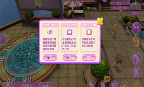在主城左侧有一个专门的广告位可以给女主播宣传,玩家花费钻石就可以让女主播上游戏主城的广告位。