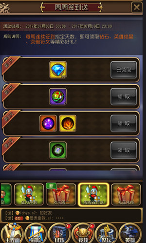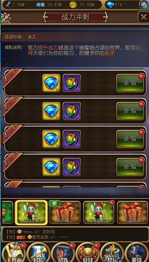游戏中不充钱并获得大量免费的资源的方式也不少,在日常活动中勇士们只要达到了指定要求就可以免费领取金色英雄哦,并且在挂机过程中还能可获得英雄卷轴,能开出什么级别英雄就看各位运气啦,听说隔壁老王今天开出了橙色英雄,开心的直跺脚!还有,还有,在试炼之地、通天塔、竞技场内金币、钻石、材料通通都有,还可以使用雇佣兵替你收集材料哦。