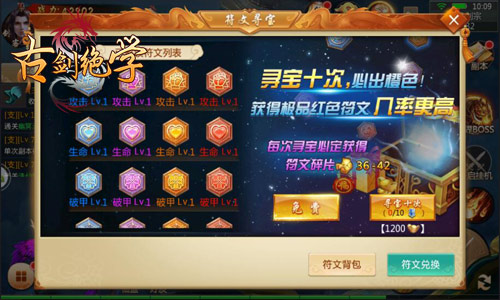 寻龙分金看缠山,一重缠是一重关……摸金校尉寻宝时耗时费力,一不小心就会扑街,但是各位冰河游戏《古剑绝学》中的玩家却可通过每日符文寻宝玩法轻松开启宝藏,赚取各类紫品、橙品符文与海量符文碎片奖励!如果各位玩家愿意一次性寻宝十次,更可100%获得1个橙色符文哦!