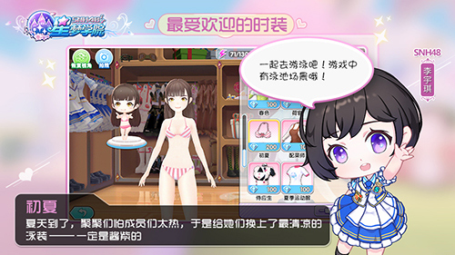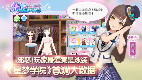 换装玩法是《星梦学院》中玩家最喜爱的玩法之一,而人气最高的时装,竟然是最清凉的泳装——也许是因为夏天到了,玩家怕偶像们跳舞时太热,才给她们换上了最清凉的泳装!嗯!事情的真相就是这样子的!一定是我想邪恶了!