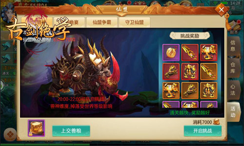 仙盟不是一个人的仙盟,有难之时应当齐心协力共进退!在冰河游戏《古剑绝学》中,同仙盟的玩家可以在每天20:00-22:00期间,参与仙盟兽神活动!仙盟兽神活动可由任意一名仙盟管理员开启,玩家只需在活动期间击杀场景内的仙盟兽神即可随机获得海量仙盟贡献、八戒红装橙装等海量道具奖励哦!