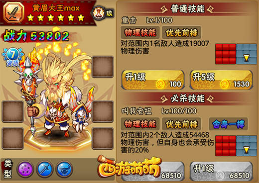 黄眉大王的必杀技能“叫我老祖”绝对是游戏中所有必杀技名字中最霸气的一个,必杀技能效果自然也是杠杠的,完全是以命换命的打法。即使是BOSS面对这种不要命的英雄,也只能怂上三分呢!