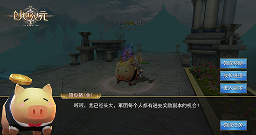 军团猪在成长的过程中褪去稚嫩的粉红色,渐渐成长为霸气的超级猪!小猪品质也在攀升:粉白的幼年猪-黑色的青年猪-花色霸气的成年猪-财富感爆足的超级猪,成为超级猪还可以开启惊喜副本,快来副本里捡坐骑和宠物道具吖!一天只有一次开启机会,30分钟内有效,军团的兄弟们可要奔走相告了,不要错过这个惊喜副本!