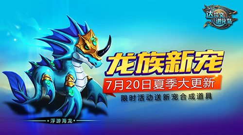 【夏季限时活动,一起去探险】缤纷夏季里除了两位新生物的登场,7月20日-7月23日期间《达尔文进化岛》也将开启限时活动,丰厚好礼赠送新生物“浮游海龙”合成道具:海龙之印,与你一起征服新生物!同时,巨岩族新宠“源生之力”可以通过野外捕抓获得噢!