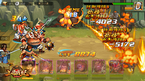 《三国战纪群雄逐鹿》创新融合了“动作”和“卡牌”两种手游的战斗方式。既有爽快的必杀技、连击玩法,让玩家在手游平台上,体验街机般热血战斗的乐趣;也有排兵布阵、武将克制,策略性丝毫不输传统卡牌手游。