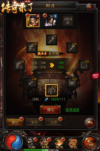在9377《传奇来了》之中,装备回收所产出的金币,可以用来进行装备合成等等;而“强化石”这一特殊材料,则能够用来进行装备部位的强化,大幅提升其对应的攻击、法防以及生命等各项属性,让勇士强者们获得更强大的战力!