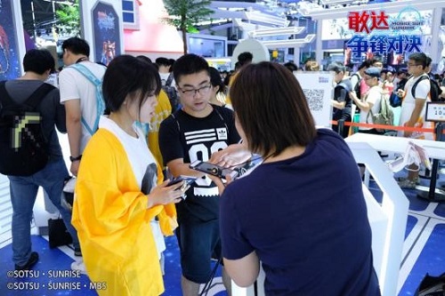 这是《敢达争锋对决》首次登陆ChinaJoy这个中国最大的动漫游戏展,除了游戏的展示之外,万代南梦宫(上海)也为粉丝准备许多奖品。展台现场人气鼎沸,热闹非凡,热衷的敢达粉丝只为一睹这款敢达新作而至现场!