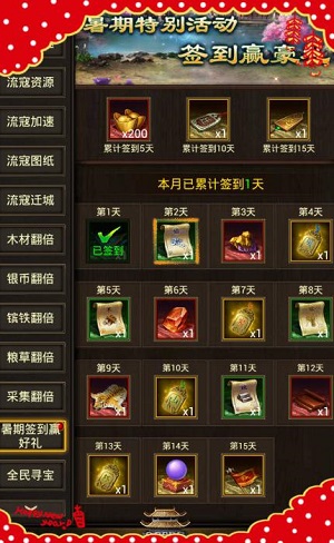 从8月1号到8月15号这整整半个月中,每天都有大礼等你拿!活动期间,小伙伴们每日登录游戏即可以领取签到奖励。同时,只要累计签到达到5天、10天、15天,分别都可再领取一份额外奖励哦!