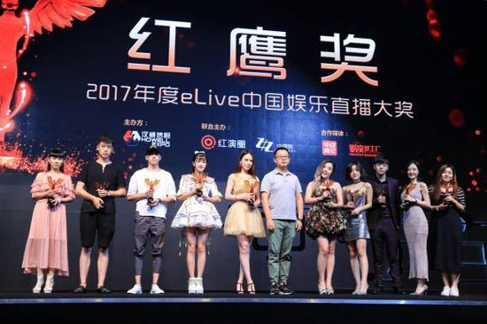 由2017ChinaJoy大会主办方汉威信恒携手中樱桃和红演圈联合主办的中国娱乐直播eLive大奖“红鹰奖”颁奖典礼,已于2017年7月26日在上海圆满落幕。