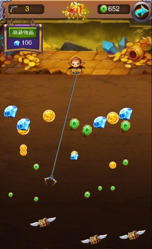 萌萌哒的飞天猴在这里充当了黄金矿工,它的目标是下方琳琅满目的资源,譬如离线金币、宝宝碎片、钻石等等。每天刷新的抓取次数有限,各位群众需要且捞且珍惜。而对于最底下三个长翅膀的宝箱,那是咱的终极目标。