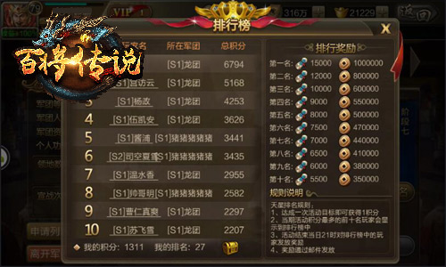 五天一次的天星榜,耗时极长,奖励自然也异常丰厚。在冰河游戏《百将传说》中,玩家所在的军团每完成天星榜一个阶段,即可随机获取天星赠与的经验、米酒等各类道具奖励。每周天星榜结束后,系统还将根据玩家个人获得的天星积分进行排名并发放海量经验与铜钱奖励,排名第一的玩家可领取15000经验与1000000铜钱哦!