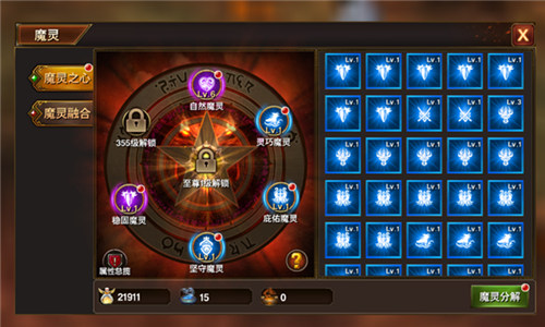 远古的魔灵之心蕴藏着神秘的力量,只有实力巅峰者才能一窥究竟!六大槽位随意搭配,嵌入自然、灵巧、庇佑、稳固等不同魔灵,获得攻击、生命、闪避、命中等不同属性加成,达到至尊一级后更有核心槽位提供大量增益,战力飞升直达巅峰!