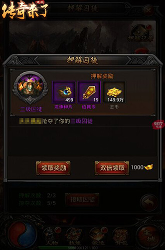 9377《传奇来了》“押解囚徒”玩法奖励详解: