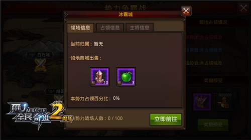 即将与玩家们见面的《全民奇迹MU》5.0新版本势力争霸战,事实上是一张巨大的沙盘地图,其上耸立着的黑火城、冰霜城、白石城、绿茵城、高地城五大城吃,便是三大势力玩家们需要进行争夺的区域战场。点击相应城池,即可查看对应战场的占领信息;从体验服中传回的截图也不难看出,占领城池并非一蹴而就,而是三大势力之间的博弈与占领百分比的不断提升。