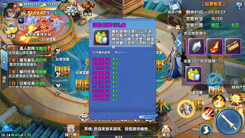 进入仙宫中,金灿灿的宝箱瞬间吸引了小编的目光,口水都快流下来了,马上开启了小编的捡钱之旅。仙宫秘宝中的宝箱每一个都可以打开一共有20次的机会,打开后会随机的出现各类奖励,有技能书、坐骑进阶石、仙羽进阶、灵宠进阶石、等等,让畅游其中的玩家惊喜到尖叫。