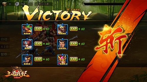 在主线关卡冒险时武将会获得战斗经验,提升等级,增加武将的攻击力、防御力、生命值等基础属性。另外,武将还可以通过饮用经验酒,或在军团营地中训练来获得经验。