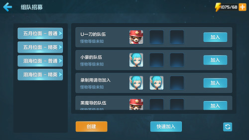 2.点击组队,出现以下面框,看见了不少队伍在凑队,不过小编任性,单独开个房间。