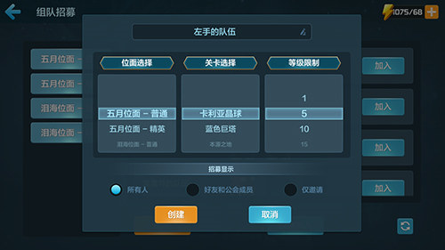 3.选下位面难度、位面关卡、等级限制以及招募对象。