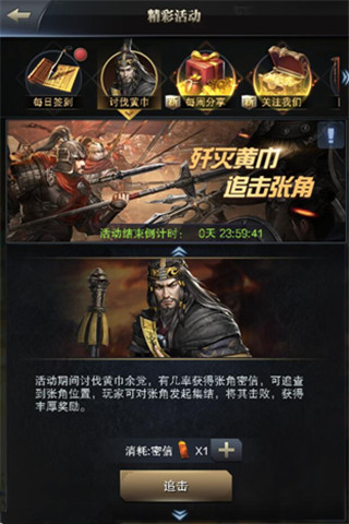 在游戏中,歼灭黄巾,追击张角的活动开启的期间,讨伐黄巾余党,有几率获得他们头领张角密信,可追查到逆贼张角的位置!密信持有者的主公们可以对张角发起集结,将其击败,获得丰厚奖励!