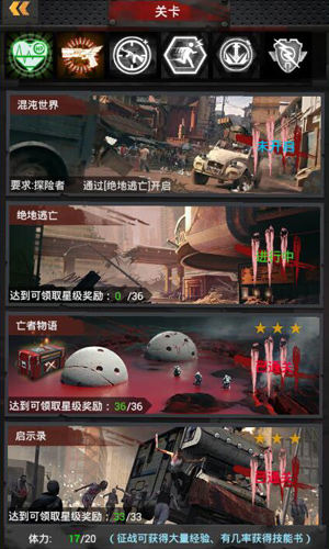 在每个关卡中,均有若干敌人等着大家前去消灭。你需要击败该关卡中的全部丧尸方可通过本关,并挑战下一关。当各位将领通过该章节所有关卡并获得三星评价时,就可领取诱人的奖励!