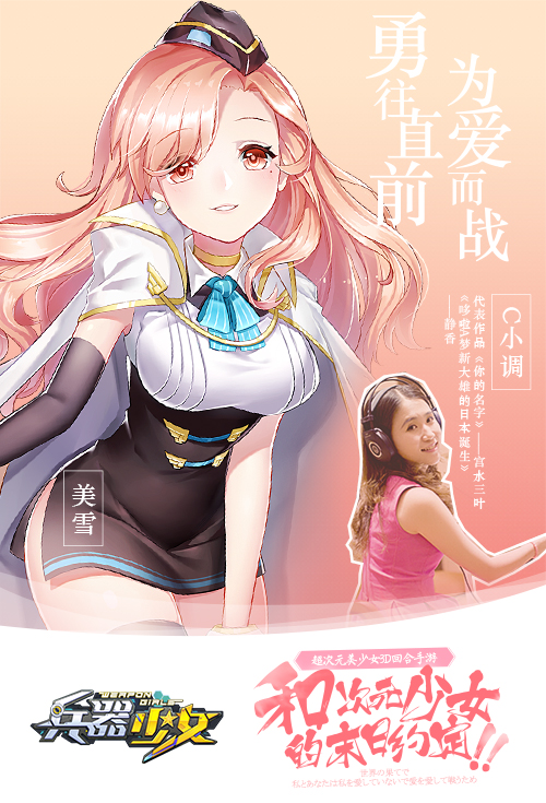 无论是ACG向的二次元还是现实的三次元,玩家对美的追求永远是不变的!曾为《你的名字》三叶、《哆啦A梦》静香、《火影忍者》漩涡向日葵配音的众多大咖级声优将加盟《兵器少女》,在9月4日首发正式版本中,你将再次听到那些优美熟悉的声音。《兵器少女》豪华强大的CV阵容备受瞩目,C小调、幽舞越山、新月冰冰等北斗企鹅旗下众多知名声优将为每一位兵器娘赋予鲜活的个性与生命。