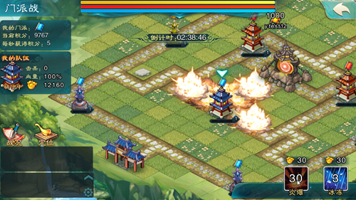 门派战作为《仙剑五》首个资料片,强势加入了实时竞技的门派对战玩法。玩家通过参加每晚九点准时开启的世界BOSS战功能进行门派积分,排名前九的门派可以参加本周的门派战。