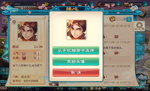 新增了玩家信息弹出框功能,玩家在非好友界面点击打开其他玩家的信息界面时,可显示按钮:拉黑、缘心、私聊、添加好友,也可显示玩家在缘心系统中的心情(与qq个性签名类似)。