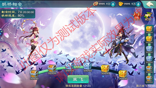 【说明】因龙幽、小蛮相隔人魔俩界,在七夕这个佳节中全服玩家收集鹊羽,促使龙幽、小蛮见上一面。